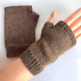 Czapka wywijana zrobiona ręcznie na drutach KIARA 100% Alpaka 607 Brąz