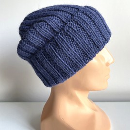 Czapka wywijana zrobiona ręcznie na drutach KIARA 100% Alpaka 9047 azuryt