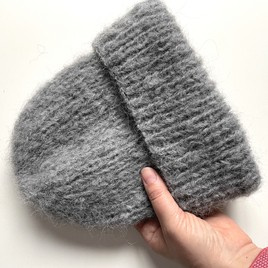 Czapka wywijana zrobiona ręcznie na drutach KIARA 100% Alpaka 9040 ostrokrzew