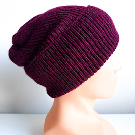 Winter Slouchy Beanie in 100% Baby Merino – Blue Shades, Hand-K