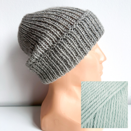Czapka wywijana zrobiona ręcznie na drutach KIARA 100% Alpaka 7323 morska mgła