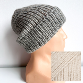 Czapka wywijana zrobiona ręcznie na drutach KIARA 100% Alpaka 9036 pszeniczny