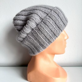 Czapka wywijana zrobiona ręcznie na drutach KIARA 100% Alpaka 9020 Perłowo-Szary Jasny
