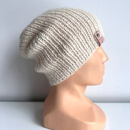 Czapka robiona na drutach KIARA 100% Alpaka 100 Ecru