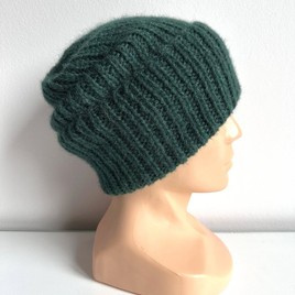 Czapka wywijana zrobiona ręcznie na drutach KIARA 100% Alpaka 9040 ostrokrzew