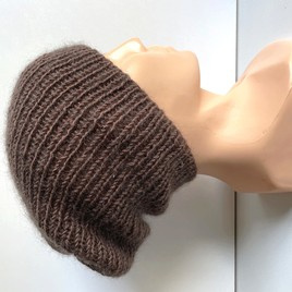 Handmade Czapka damska AUREA 100% Baby Merino plus moher i jedwab 62/15 średni brąz