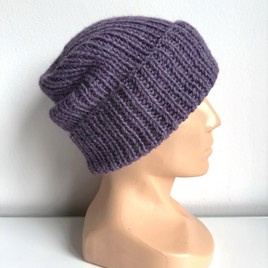 Czapka wywijana zrobiona ręcznie na drutach KIARA 100% Alpaka 4434 Ametyst