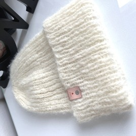 Ręcznie robiona czapka beanie AUREA 100% Baby Merino plus moher i jedwab 02/01 Ecru