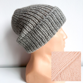( Anzahl der Produkte: 712 )Czapka wywijana zrobiona ręcznie na drutach KIARA 100% Alpaka 9035 lawendowy szron