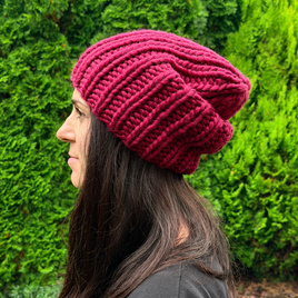 Ciepła czapka ręcznie robiona CHMURKA Alpaka 44 karminowy