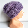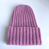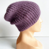 Czapka wywijana zrobiona ręcznie na drutach KIARA 100% Alpaka 9046 dzikie jagody