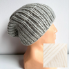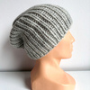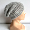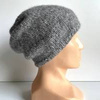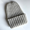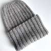 Czapka wywijana zrobiona ręcznie na drutach KIARA 100% Alpaka 501 Jasny Szary