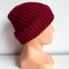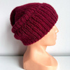 Czapka wywijana zrobiona ręcznie na drutach KIARA 100% Alpaka 9044 ciemne winogrona