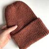 Czapka wywijana zrobiona ręcznie na drutach KIARA 100% Alpaka 9041 miedziany brąz