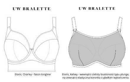 Do kategorii longline bras zaliczyłyśmy również braletki z fiszbinami (Uw Bralette). Jak widzimy na przykładzie Elomi, modny fason bralette nie jest zarezerwowany wyłącznie dla małych biustów i wąskich obwodów. Możesz sięgnąć po zadowalający efekt podtrzymania bez kompromisów! Pozwalają na to fiszbiny i odpowiednia konstrukcja stanika. Za uniesienie piersi do przodu odpowiada trzyczęściowa miseczka oraz boczny panel wspierający. Budowa koronki pod miseczkami zapobiega rolowaniu - jest odpowiednio luźna i elastyczna. Biustonosze Charley mają obniżony mostek, dlatego nadają się do noszenia w wyciętych dekoltach, bez push-upu!