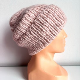 Ręcznie robiona, wywijana Czapka 100% moher z jedwabiem Beżowa
