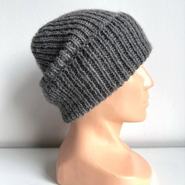 Ręcznie robiona Czapka wywijana KIARA 100% Alpaka 517 Średni Szary