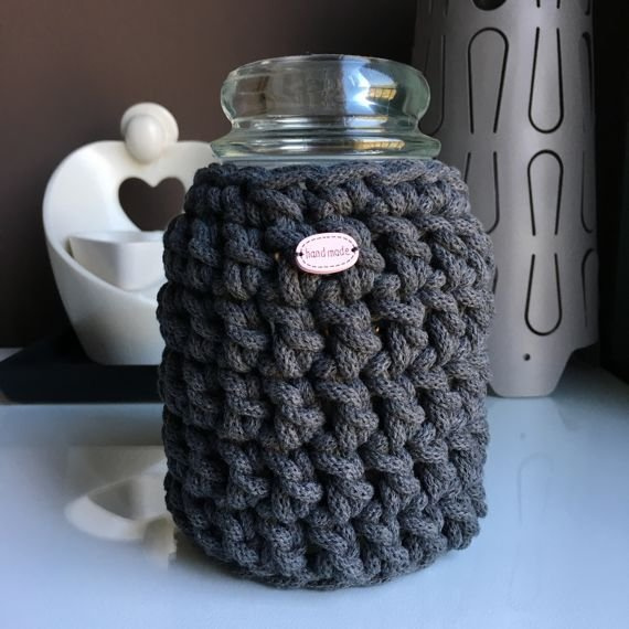Ręcznie robiony Sweterek na świecę ze sznurka bawełnianego 150 grafitt