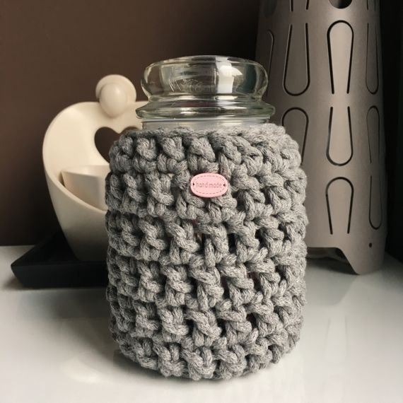 Ręcznie robiony Sweterek na świecę ze sznurka bawełnianego 125 średni szary