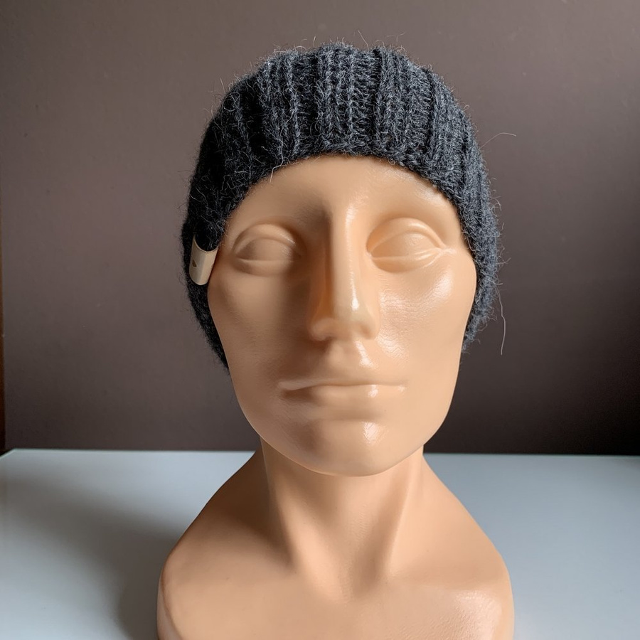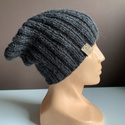 - Ręcznie robiona Czapka hand made Ciemny Szary Prążki 100% Alpaka