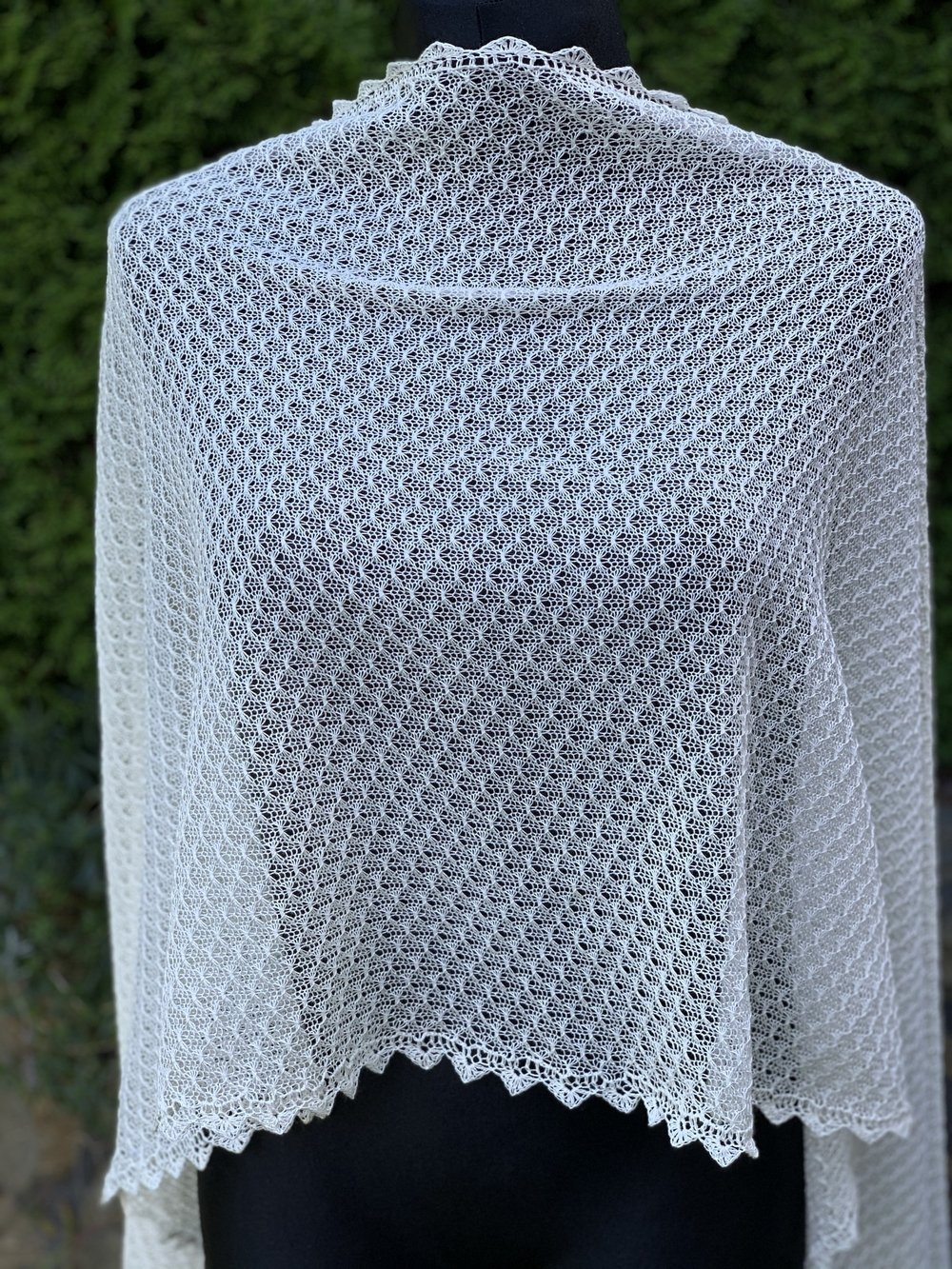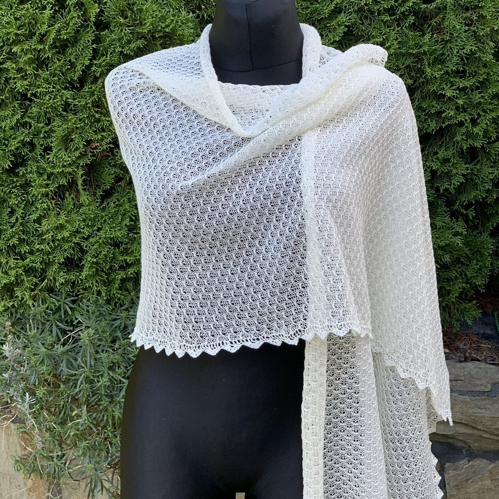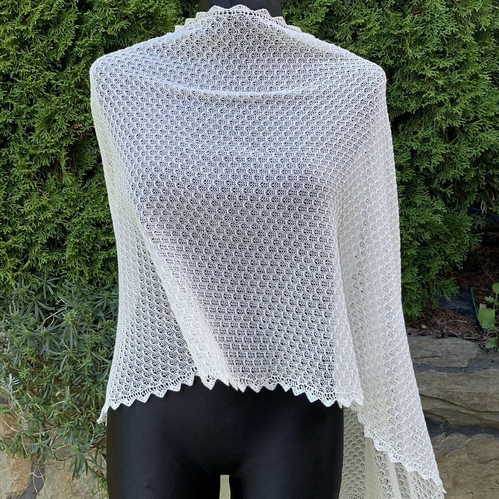 Szal wykonałam na ręcznej maszynie dziewiarskie z troską i dbałością o każdy szczegół ♥ Cały szal wykończyłam szydełkową koronką. Jest piękny i niepowtarzalny.