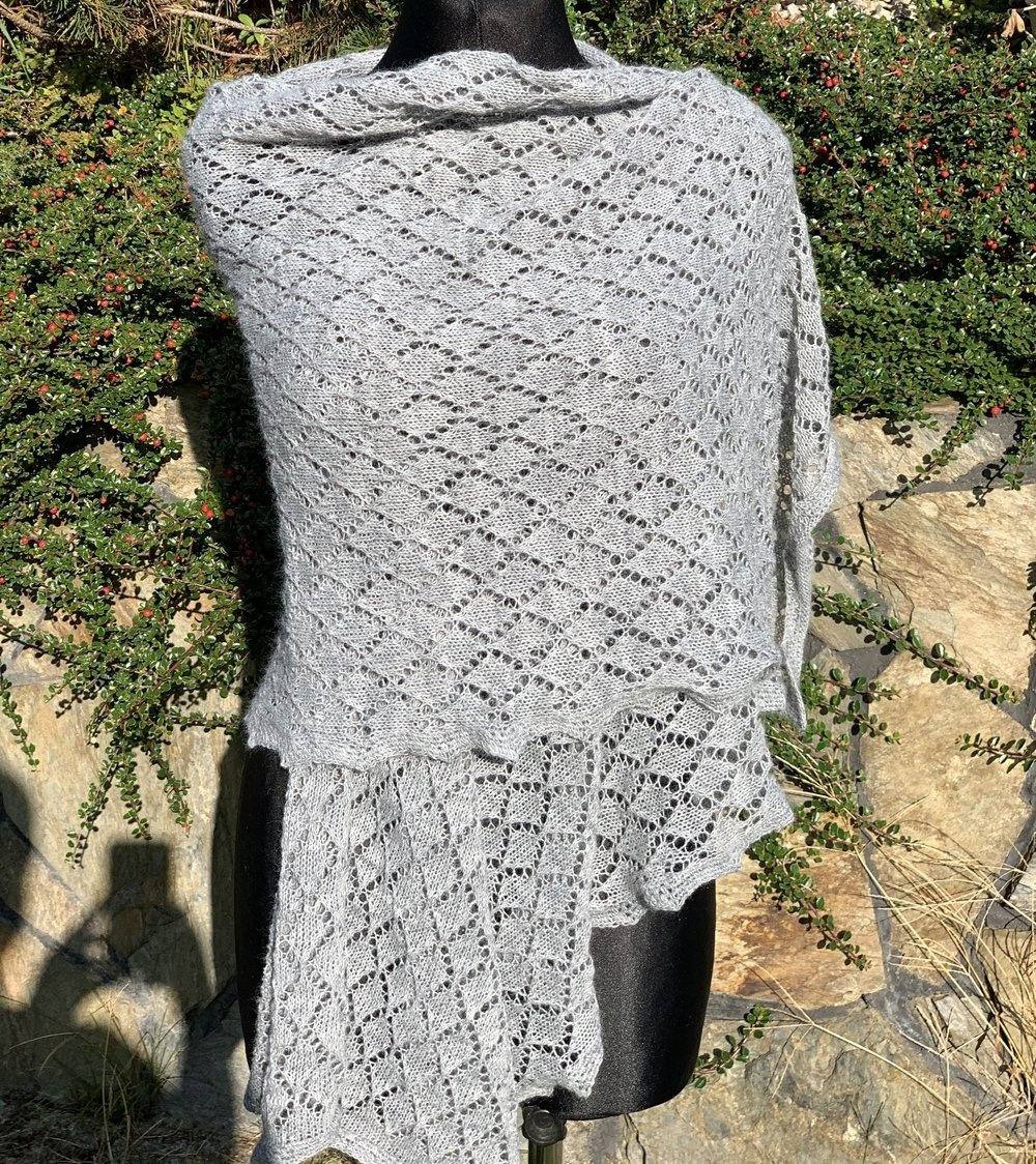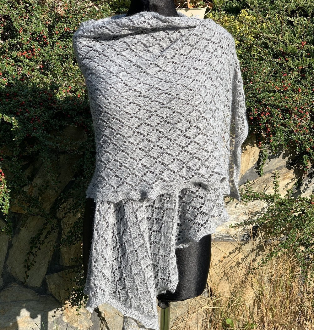 Szal wykonałam na ręcznej maszynie dziewiarskie z troską i dbałością o każdy szczegół ♥ Cały szal wykończyłam szydełkową koronką. Jest piękny i niepowtarzalny.