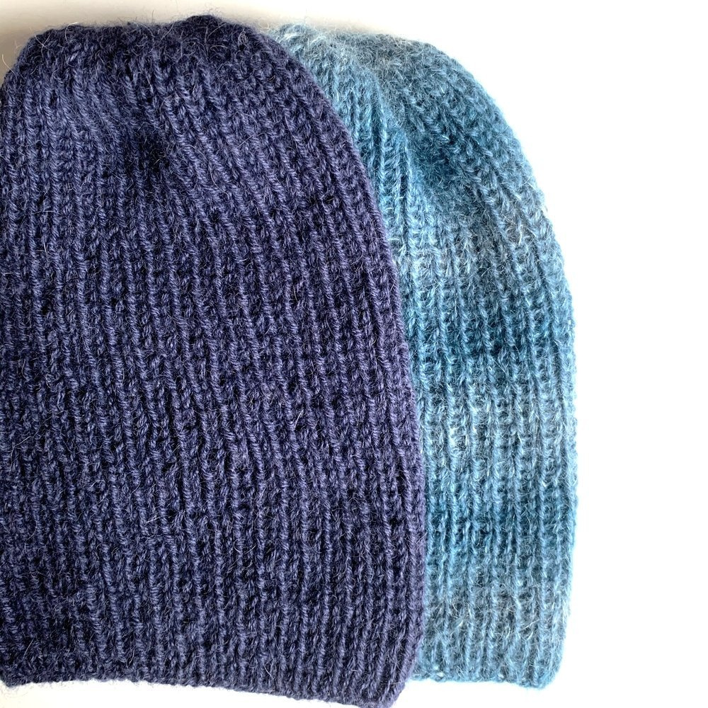 • Ręcznie robiona Czapka hand made Granatowa Ściągacz 100% Alpaka