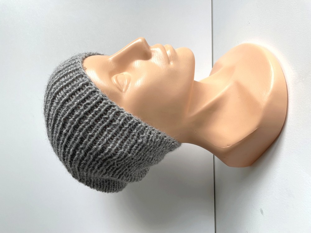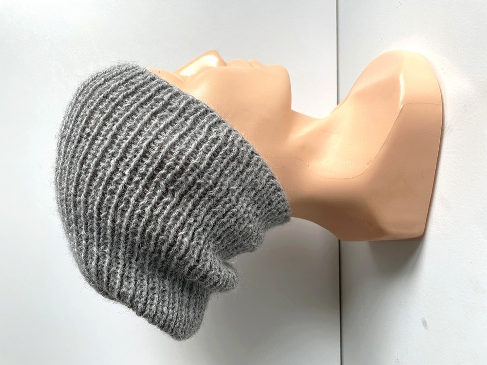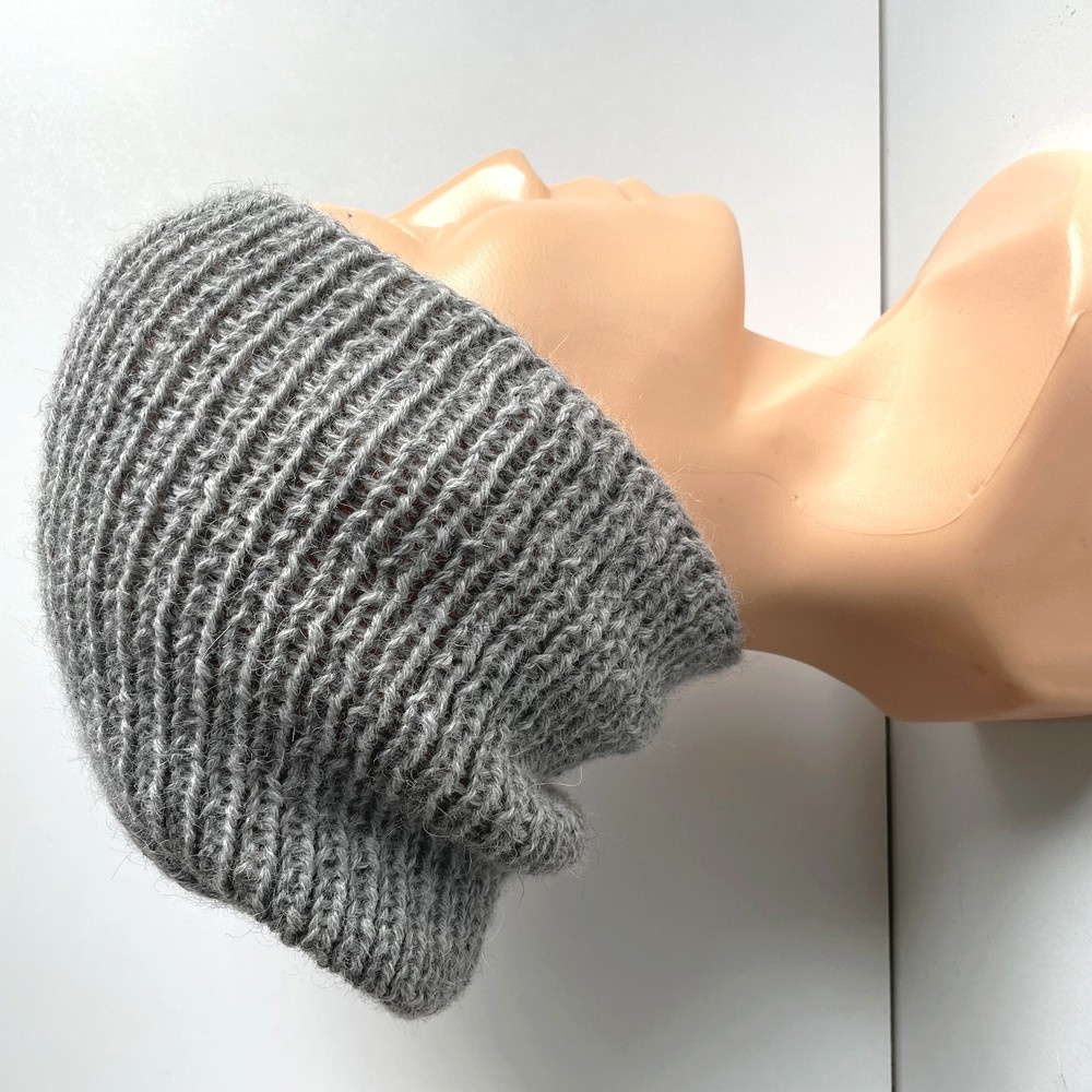• Ręcznie robiona Czapka hand made Ściągacz 100% Alpaka 501 Jasny Szary