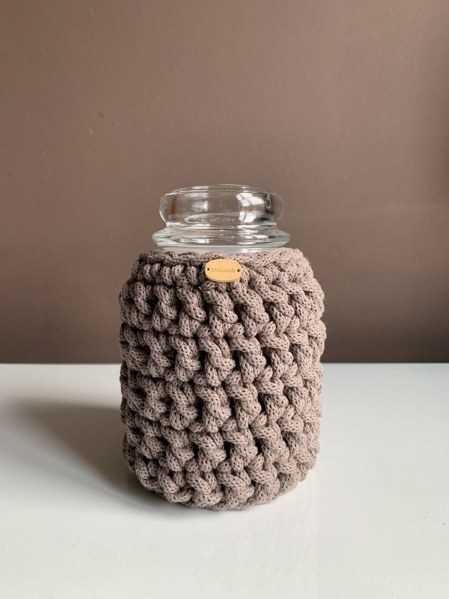 Ręcznie robiony Sweterek na świecę ze sznurka bawełnianego 700 Kakao
