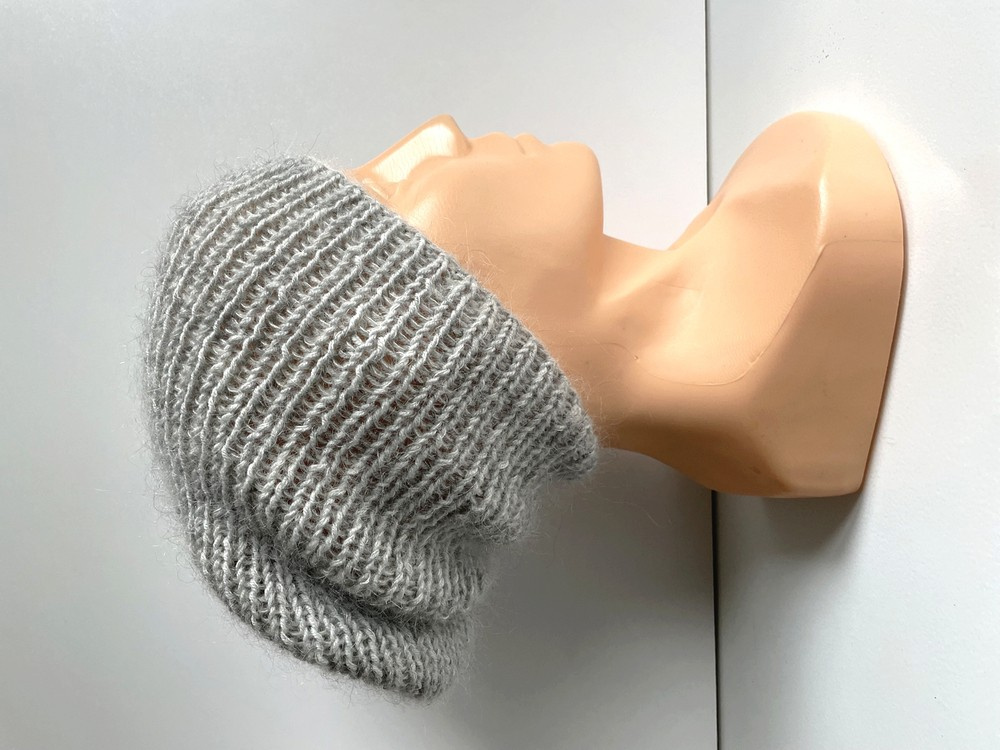 Handmade Czapka damska AUREA 100% Baby Merino plus moher i jedwab 22/44 Jasny Szary