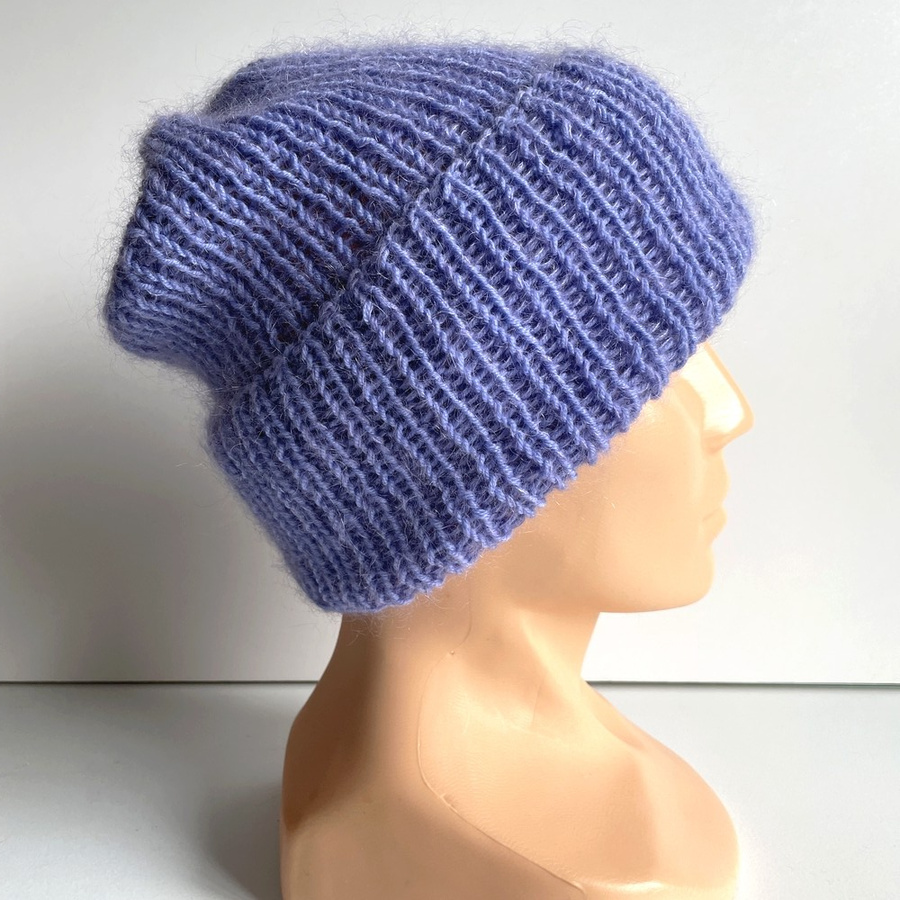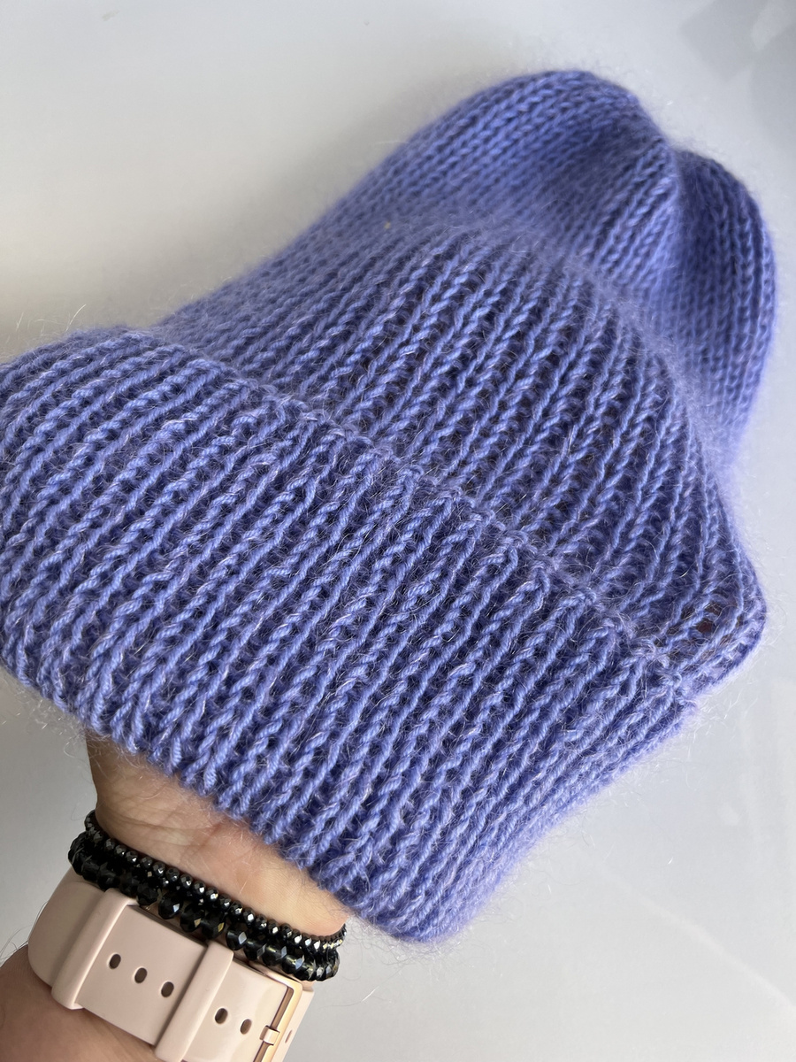 Ręcznie robiona czapka beanie AUREA 100% Baby Merino plus moher i jedwab 25/11 Lawenda