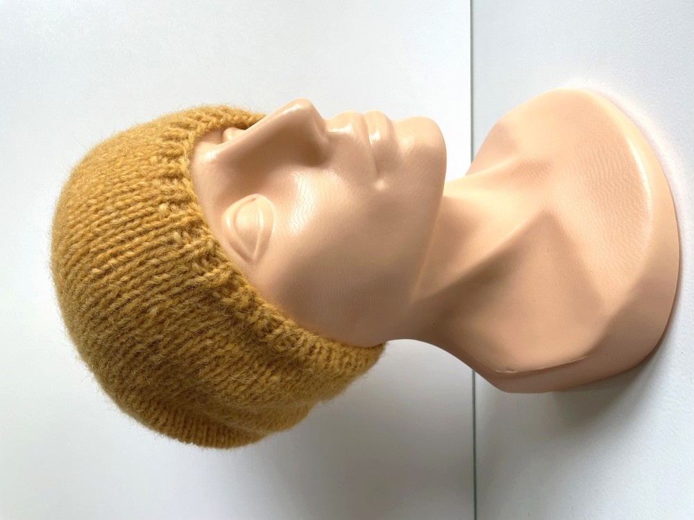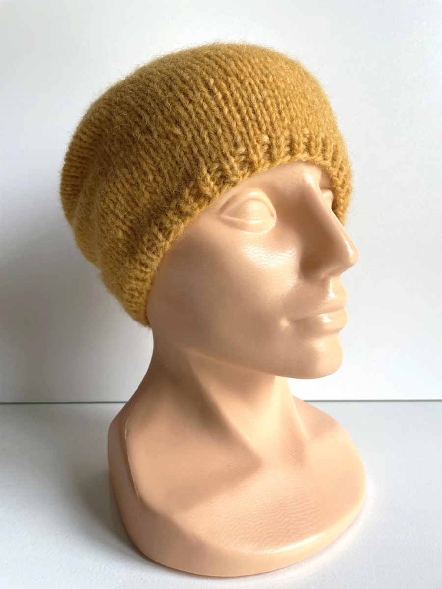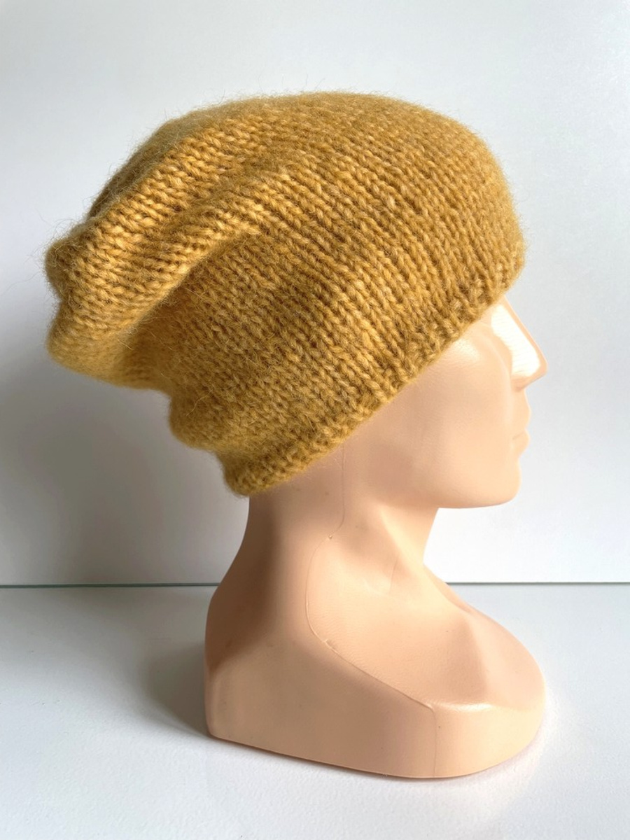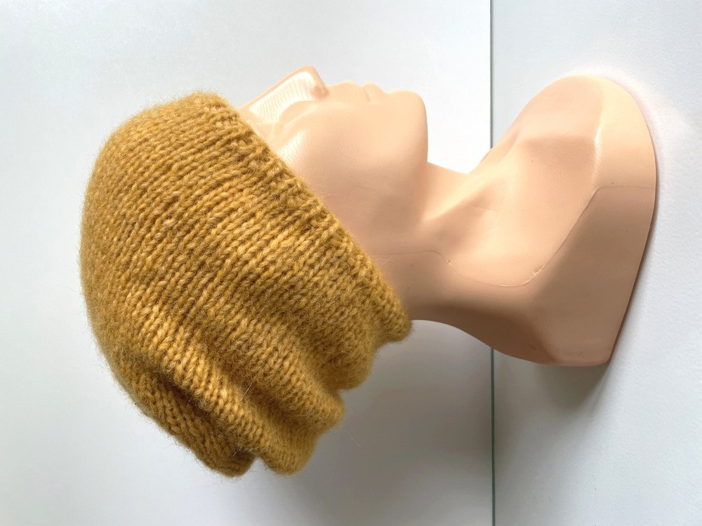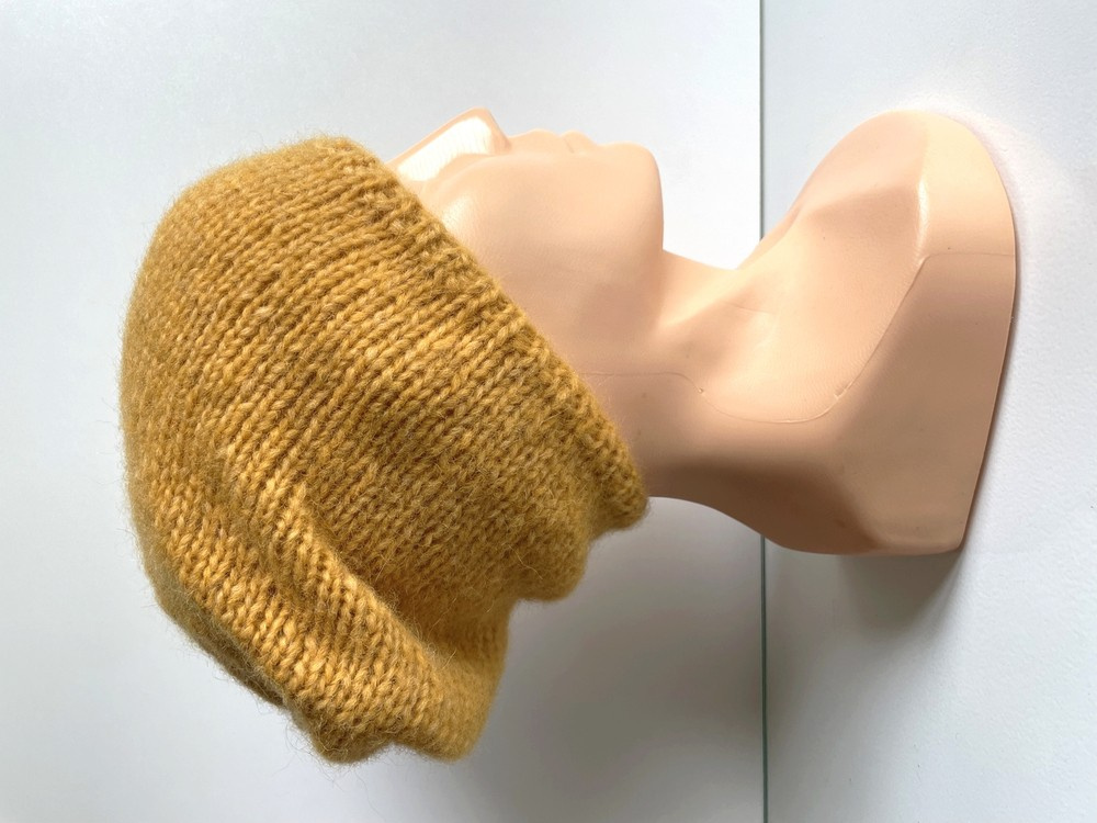 Ciepła czapka ręcznie robiona CHMURKA Alpaka 22 Żółty