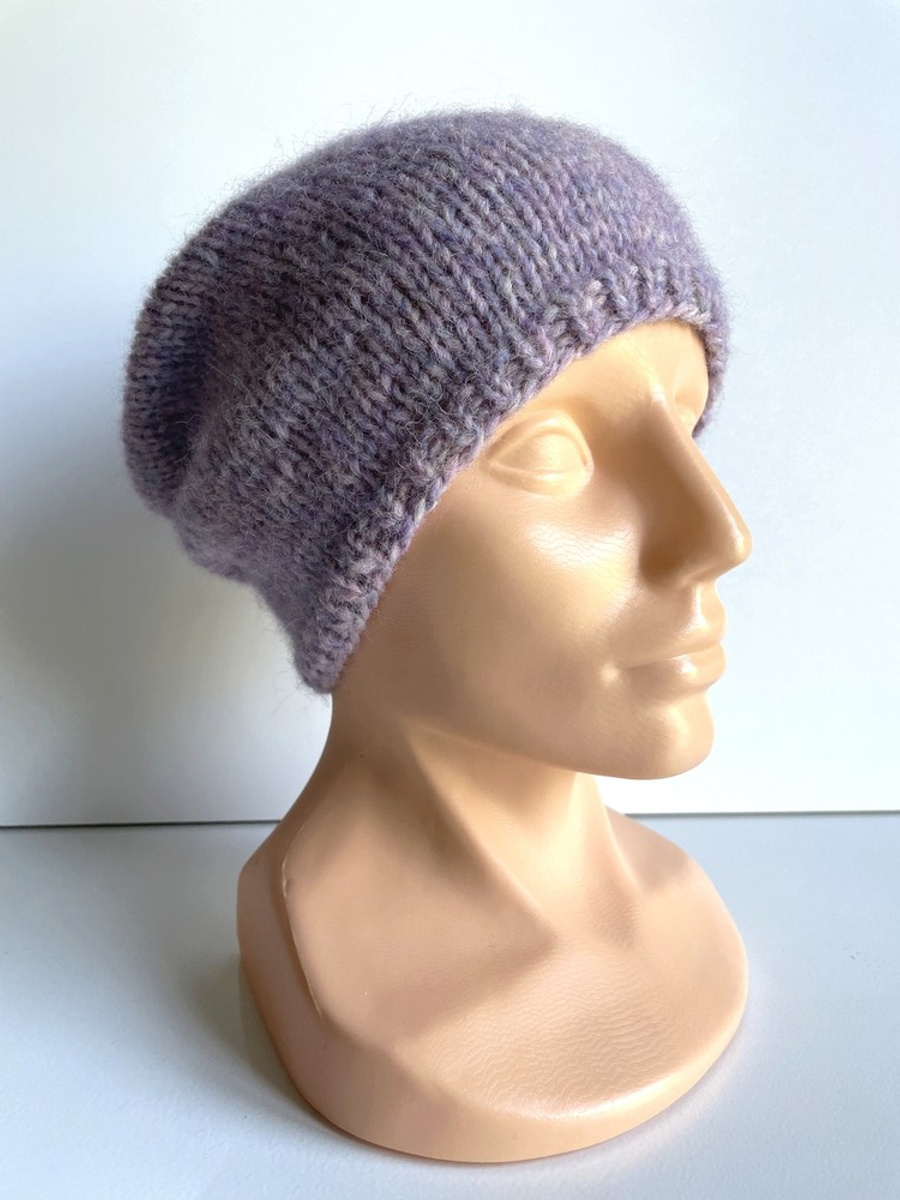 Ciepła czapka ręcznie robiona CHMURKA Alpaka 15 Fioletowa Mgiełka