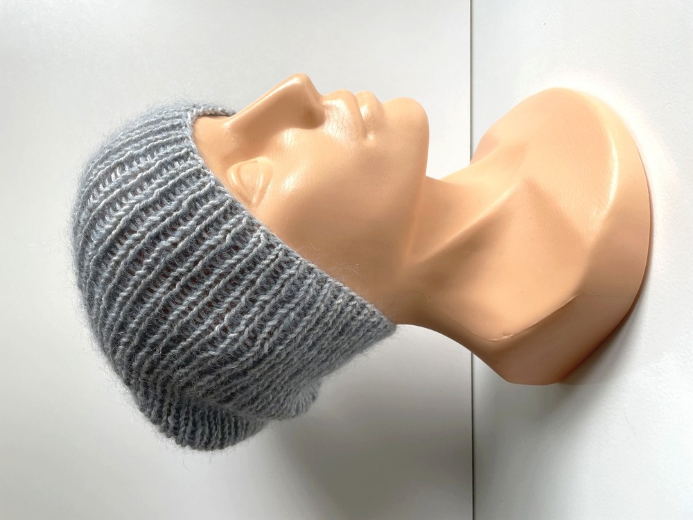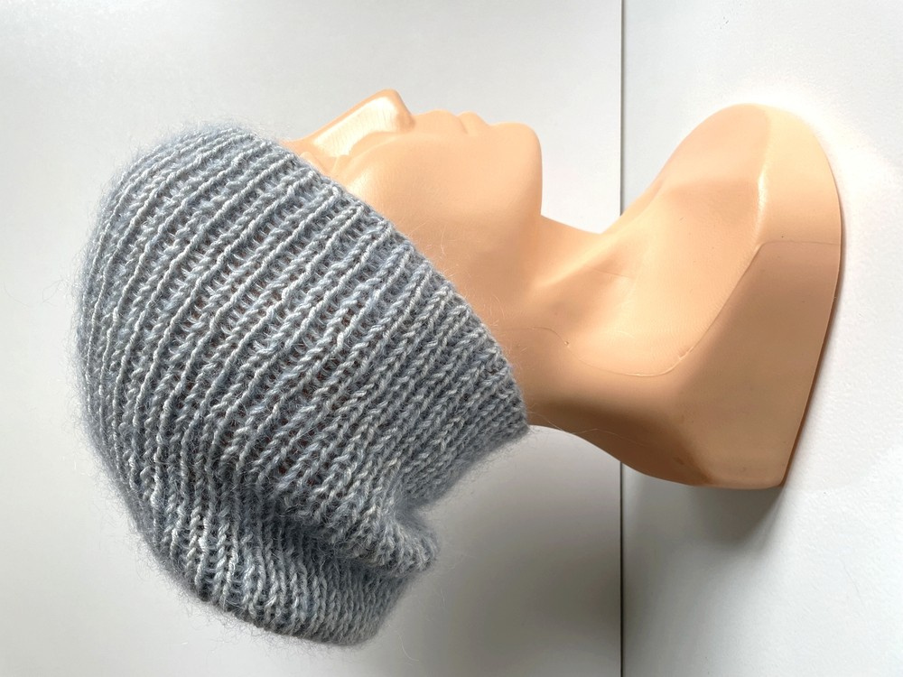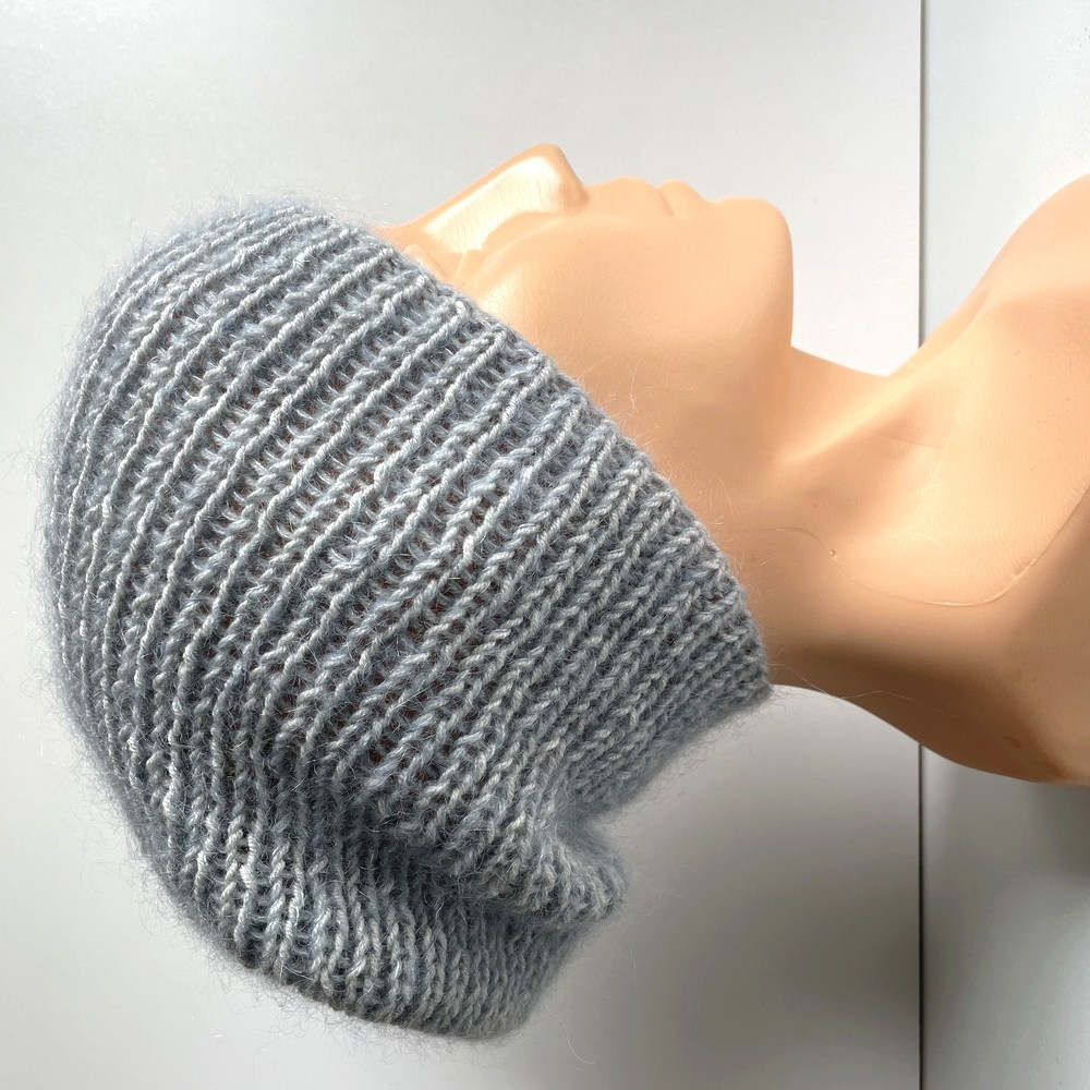 Handmade Czapka damska AUREA 100% Baby Merino plus moher i jedwab 22 Szaro Błękitny