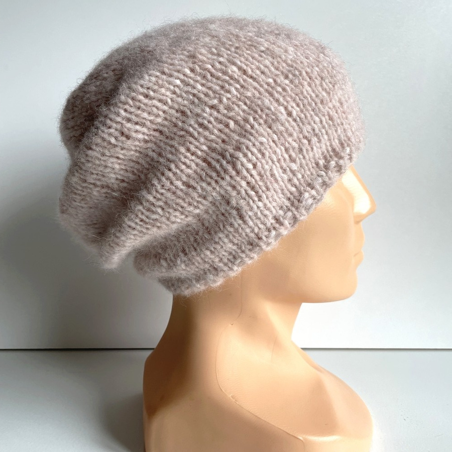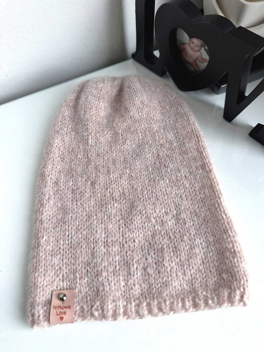 - Czapka robiona na drutach CHMURKA Alpaka 33 Różowy Piasek