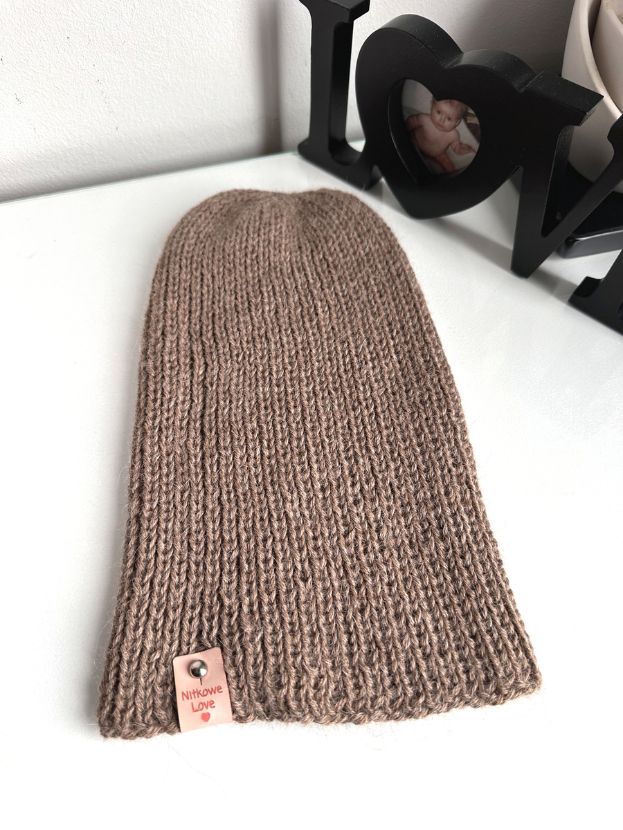 Czapka robiona na drutach KIARA 100% Alpaka 618 Nugat