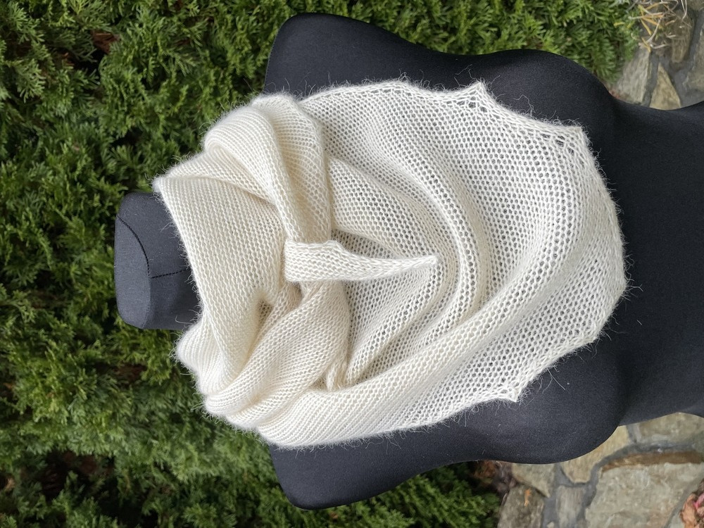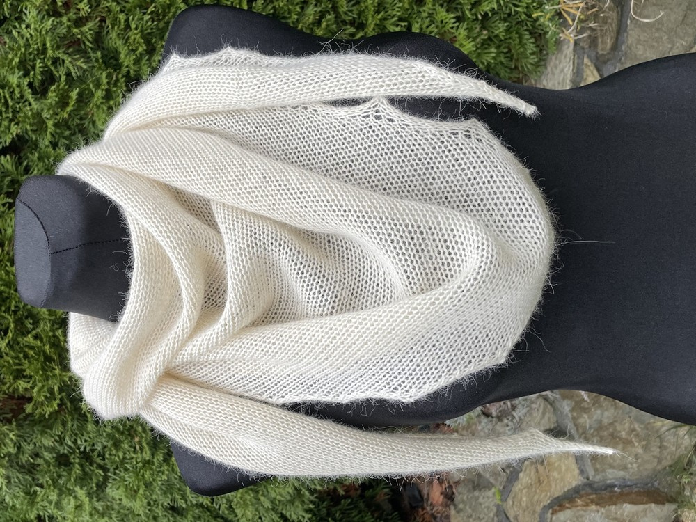 Urocza chusta ze 100% Alpaki. Wykonana gładkim ściegiem. Idealnie pasuje do czapki LAURIN lub KIARA.
