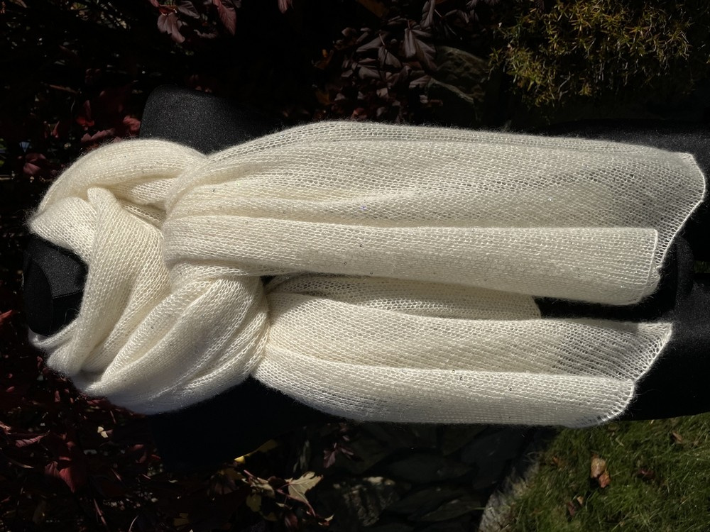 Delikatny i zwiewny szal z moheru z merynosem Ciemny Róż Pudrowy. Na całości bardzo delikatne, malutkie cekiny.