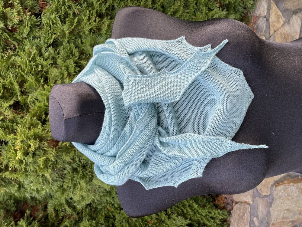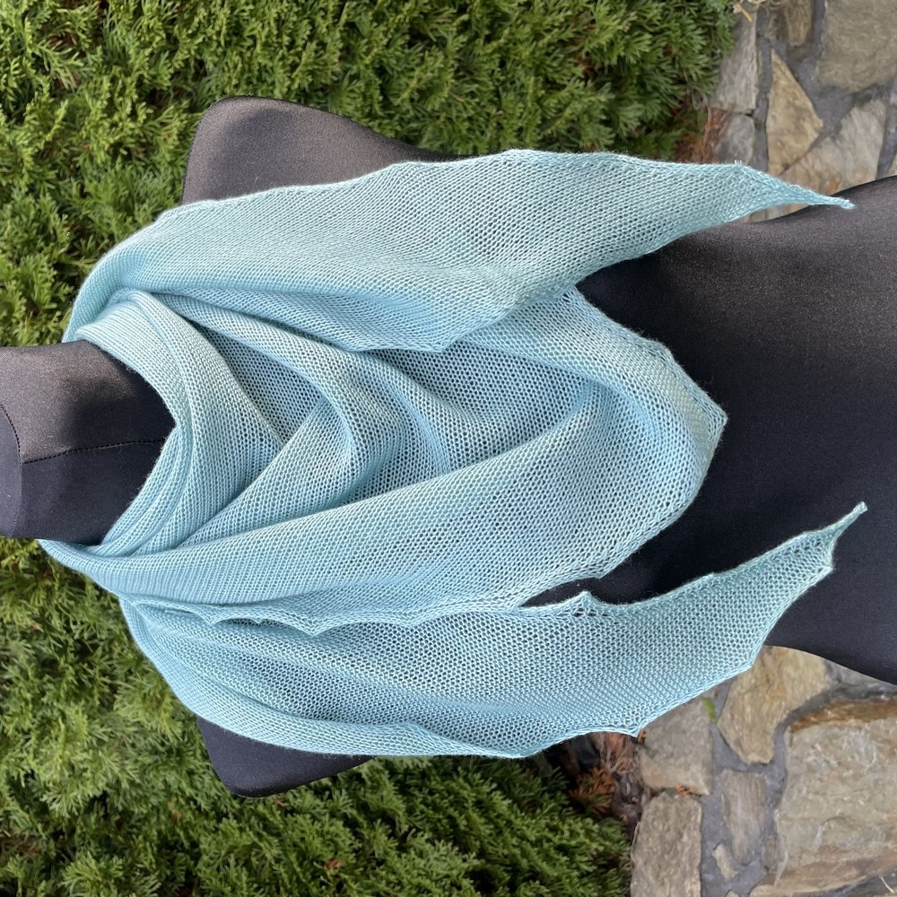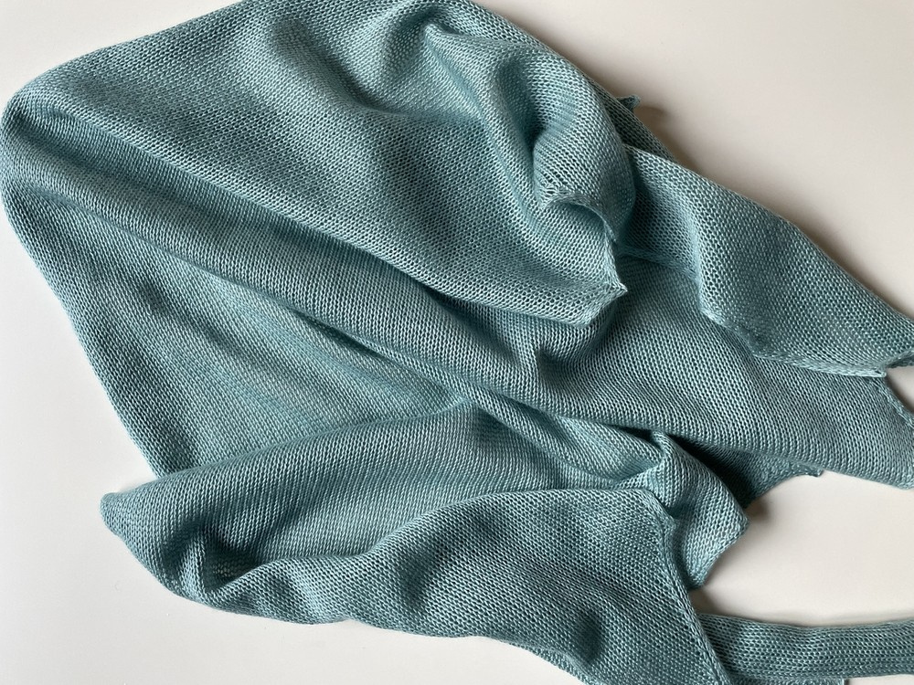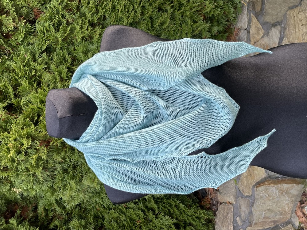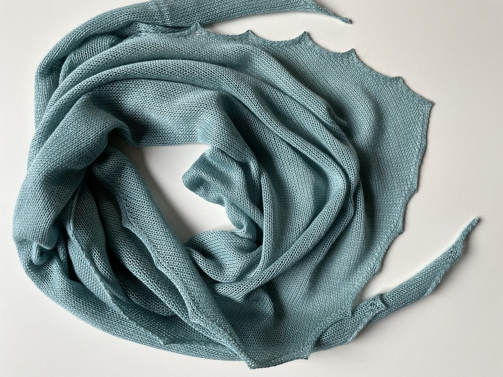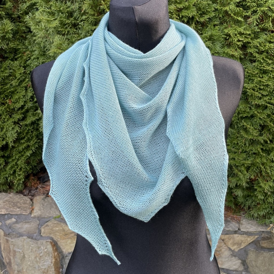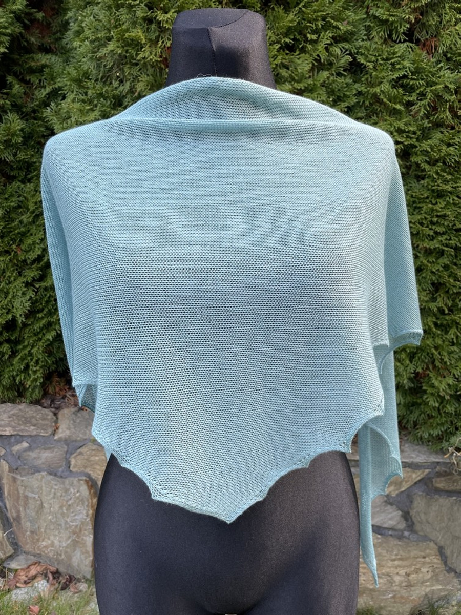 Piękna i delikatna chusta z cudownej włóczki (50% jedwab i 50% merynos). Wykonana gładkim ściegiem.