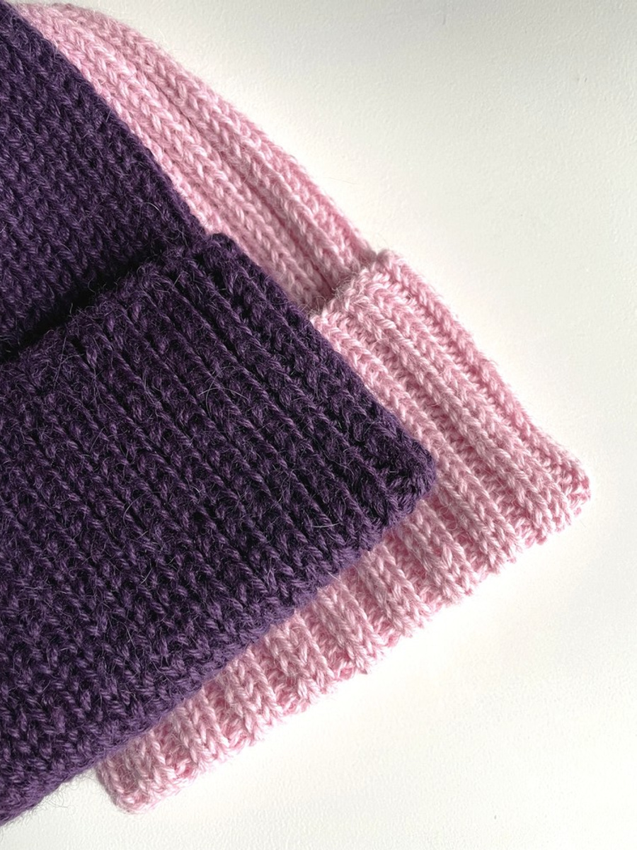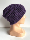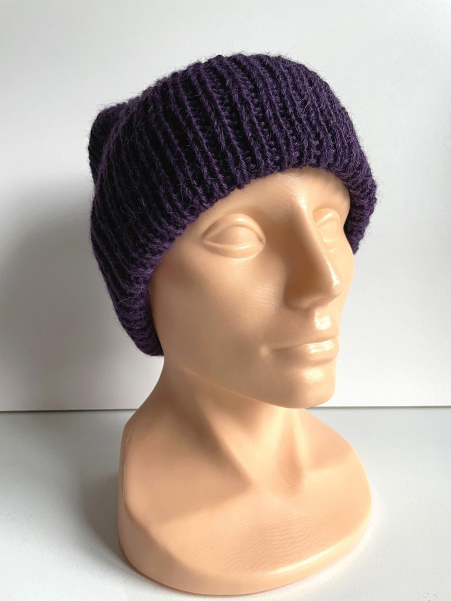 Czapka wywijana wykonana ręcznie na drutach KIARA 100% Alpaka 4400 Ciemno Fioletowy