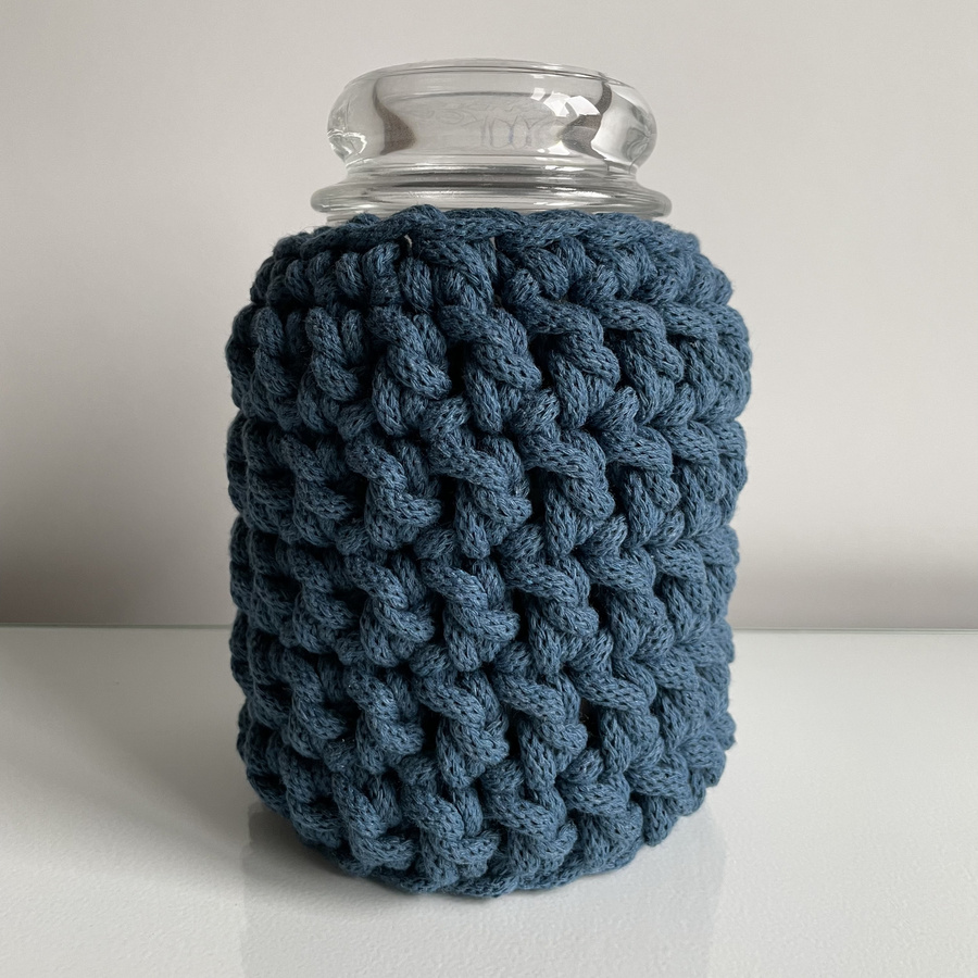 Ręcznie robiony Sweterek na świecę ze sznurka bawełnianego 810