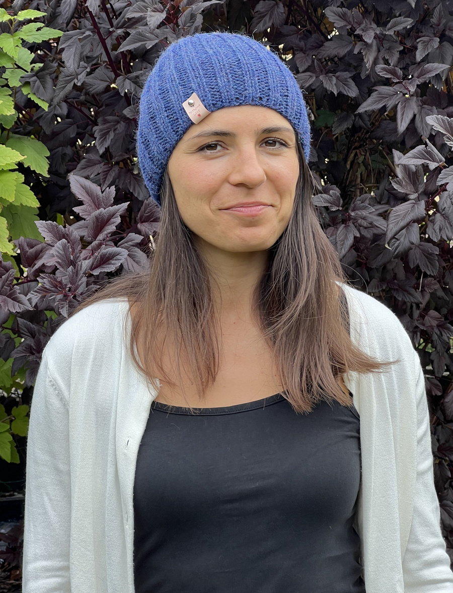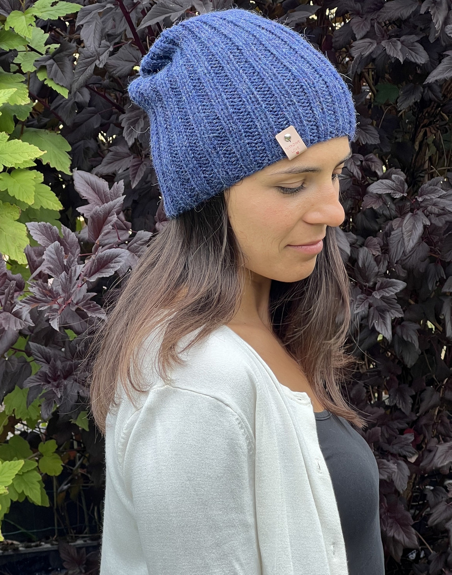 Czapka 100% alpaka jest ozdobiona metką Nitkowe Love ze skóry ekologicznej, którą można łatwo odpiąć do prania.
