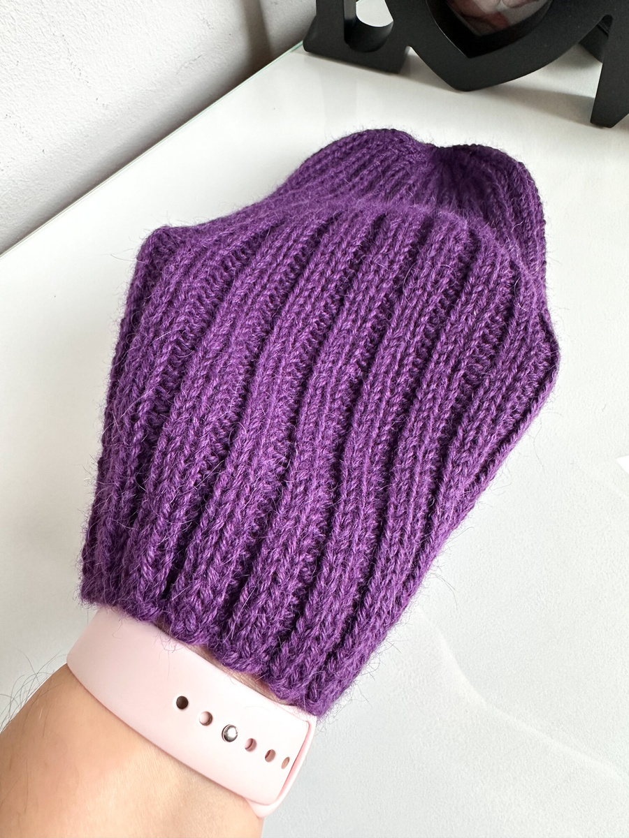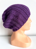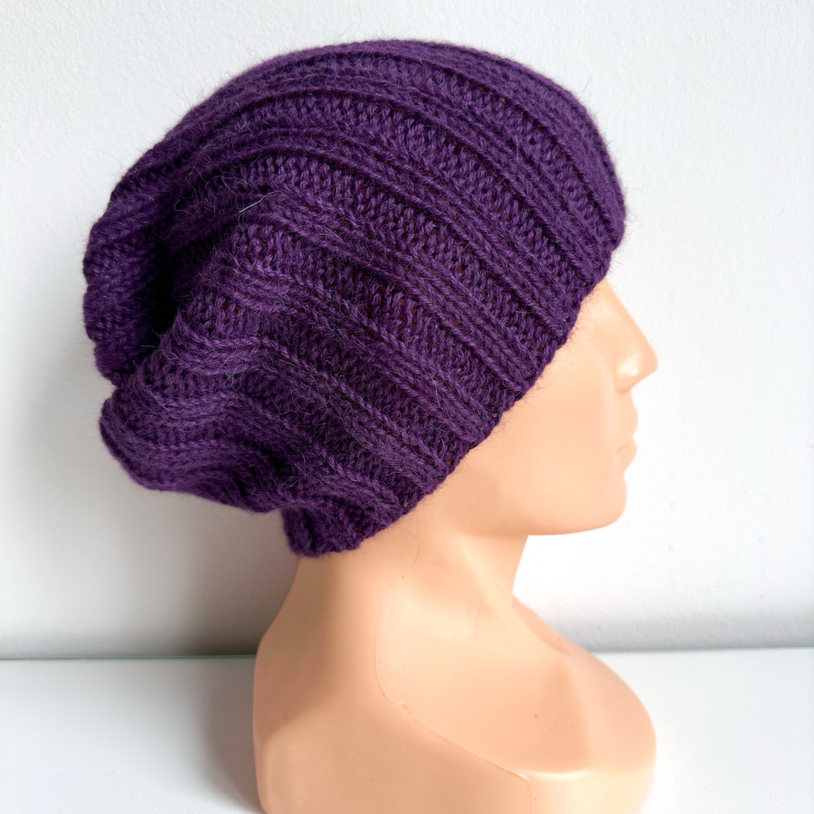 • Ręcznie robiona Czapka hand made Prążki 100% Alpaka 4400 Ciemny Fiolet. Inne kolory na zamówienie.