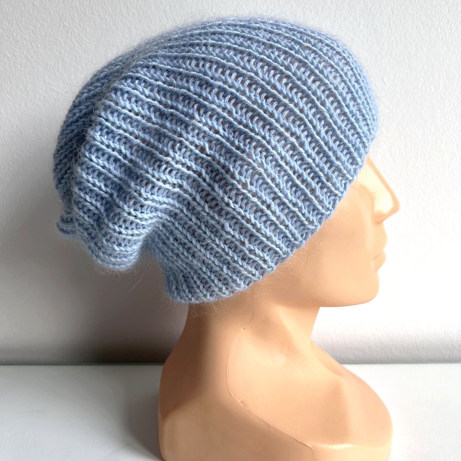 Handmade Czapka damska AUREA 100% Baby Merino plus moher i jedwab 11/07 błękitny stalowy