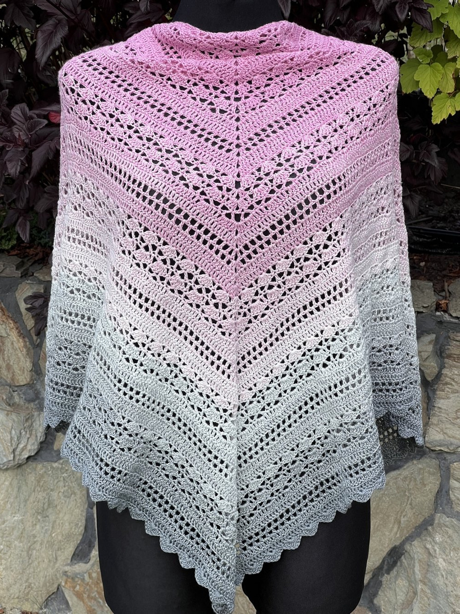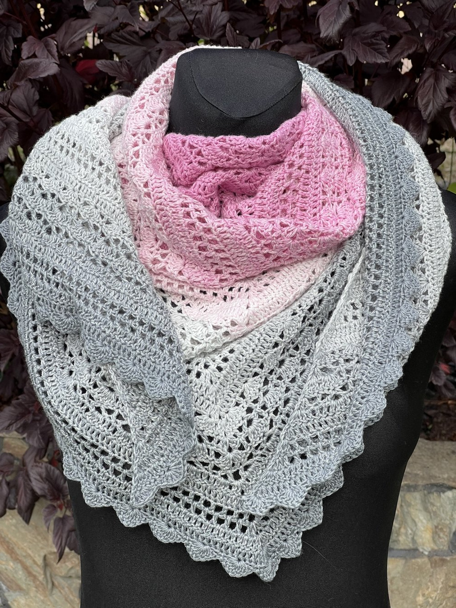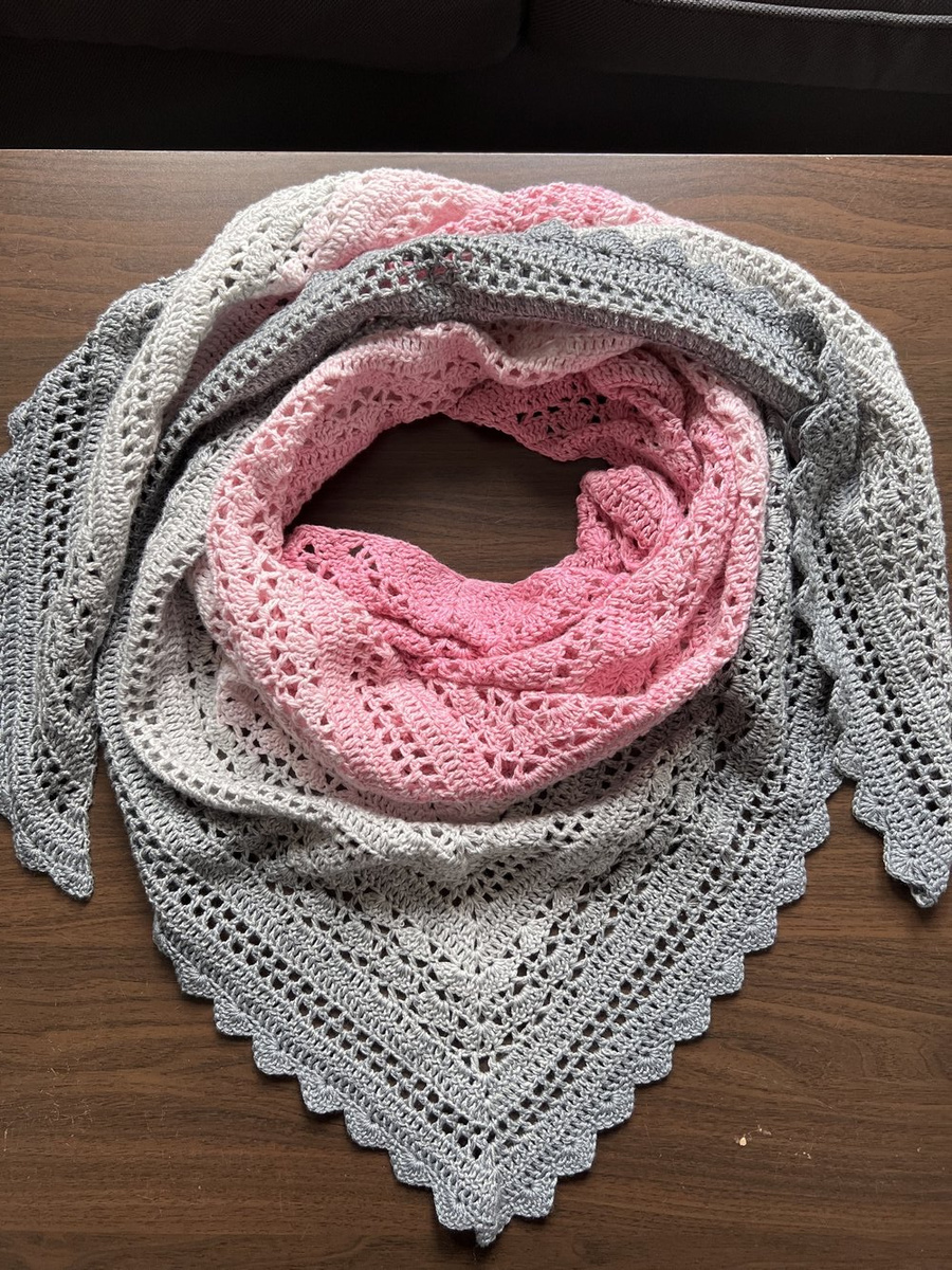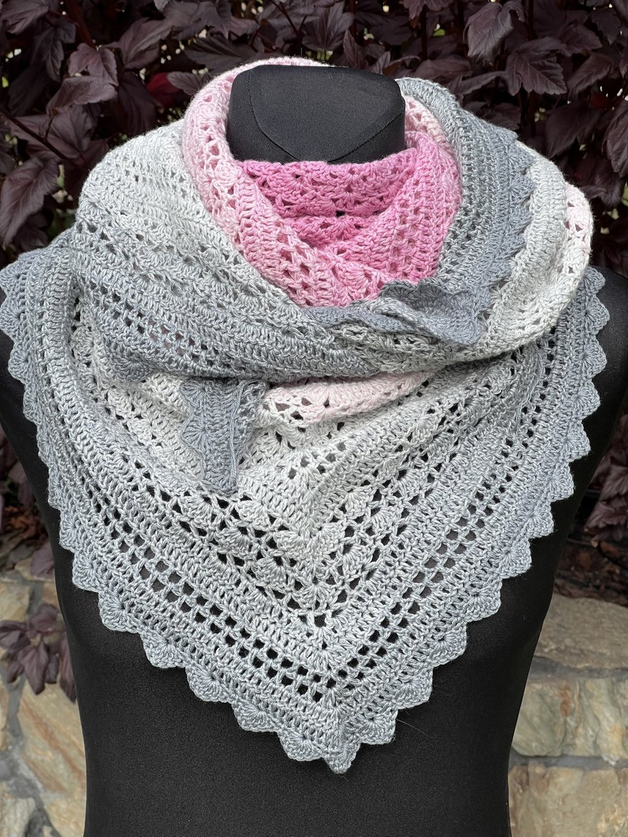 - Ręcznie wykonana chusta w odcieniach szarości i różu