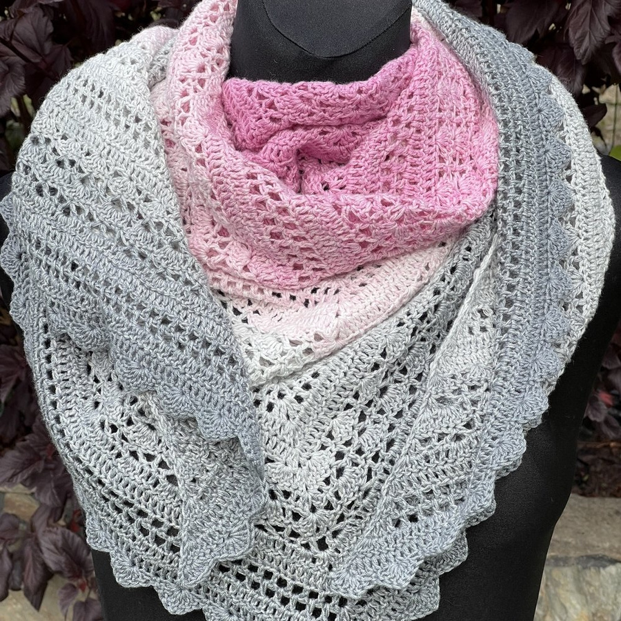 Ręcznie wykonana chusta z bawełną w odcieniach szarości i różu