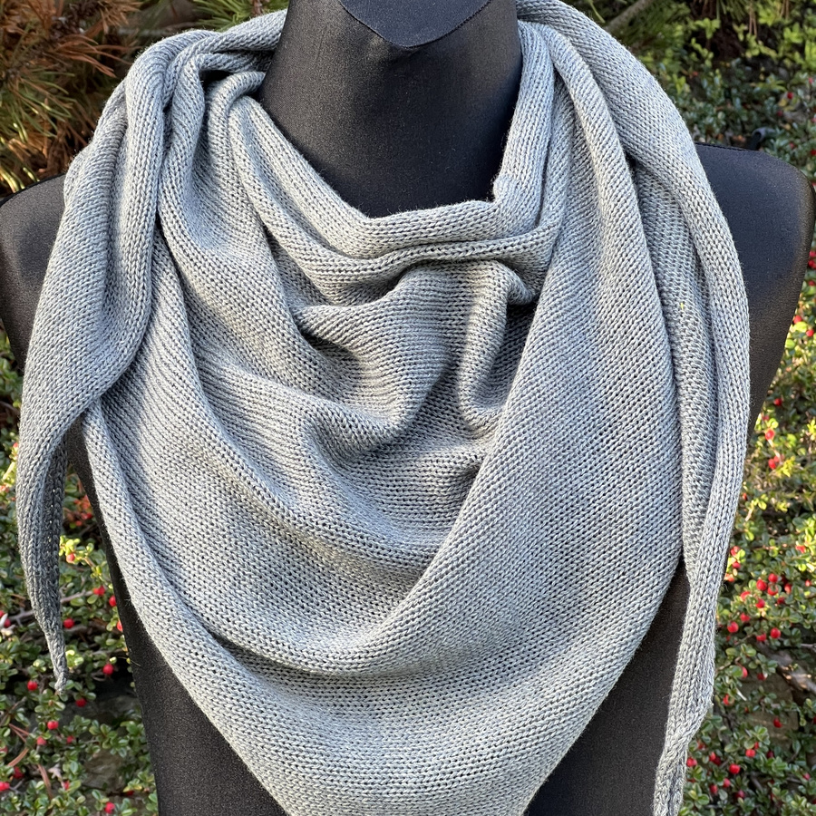 Prosta chusta z wysokiej jakości włóczki, wykonana gładkim ściegiem.