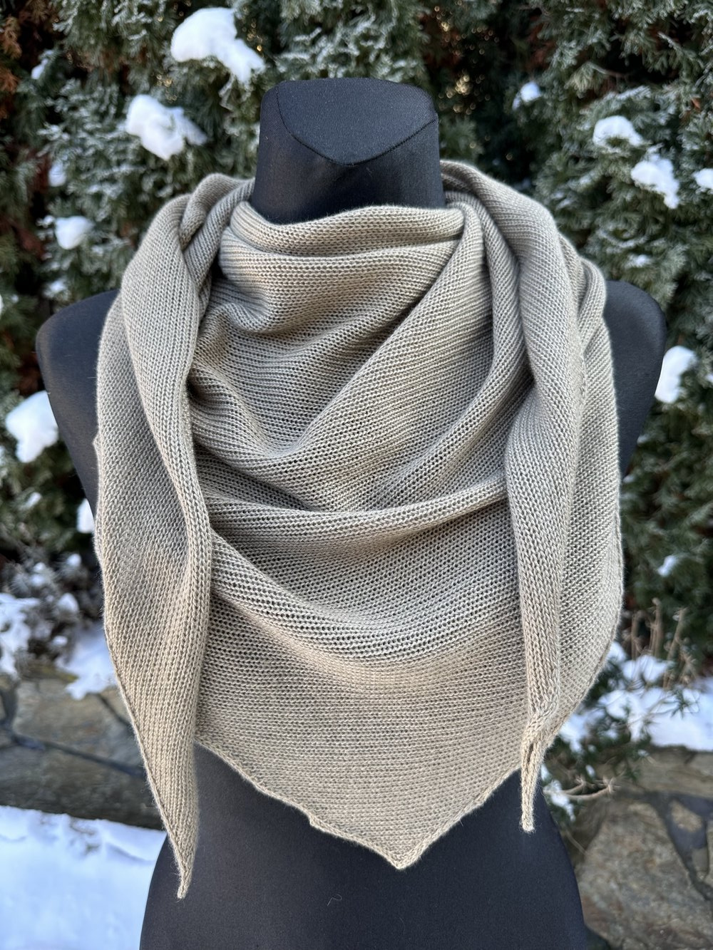 Piękna i delikatna chusta z cudownej włóczki 100% Kaszmir. Wykonana gładkim ściegiem.