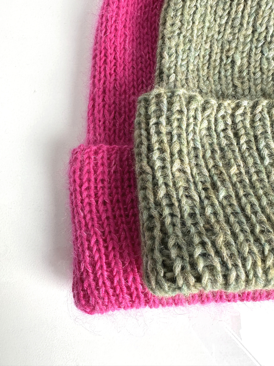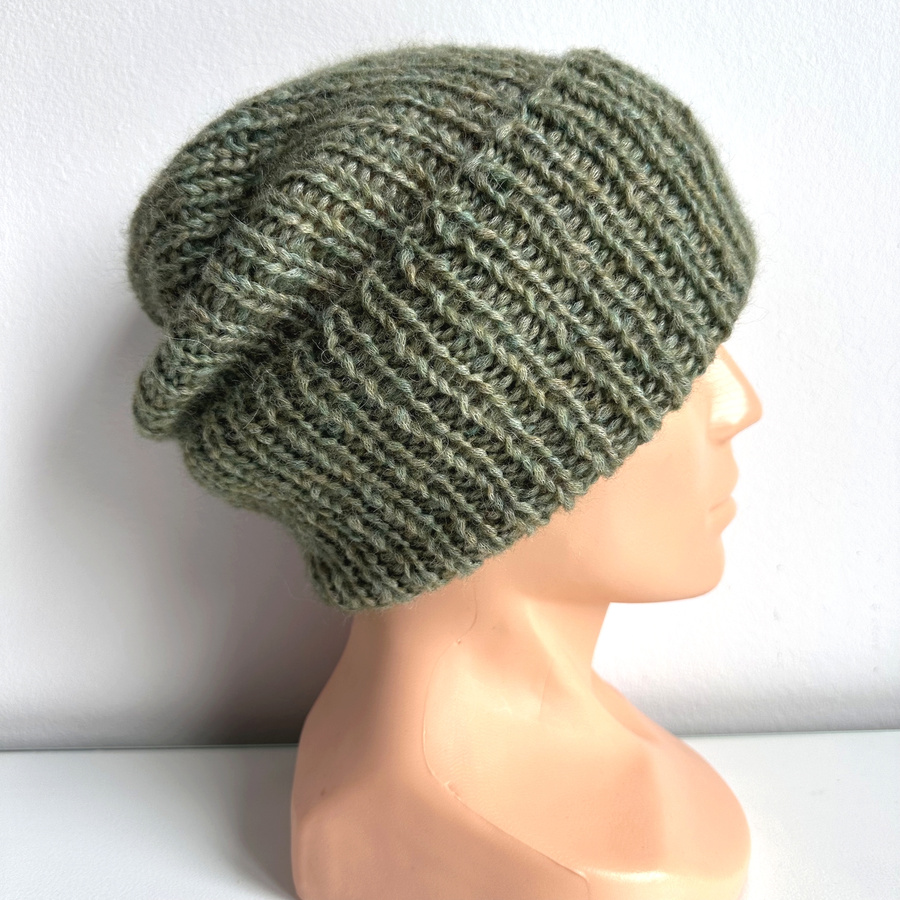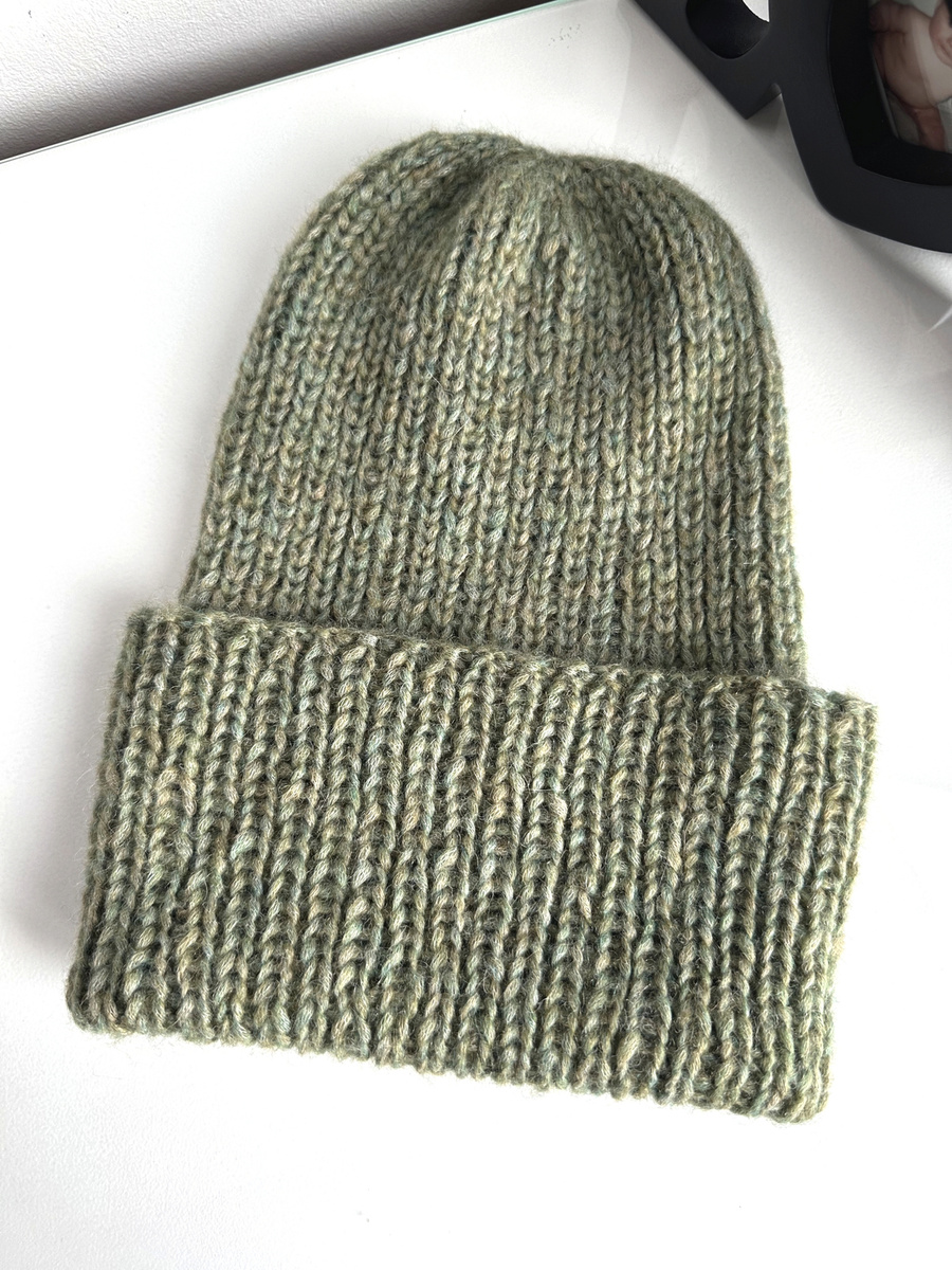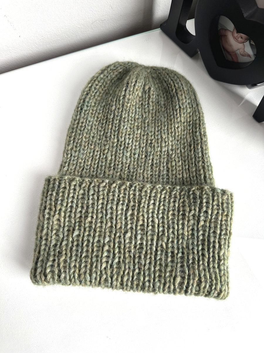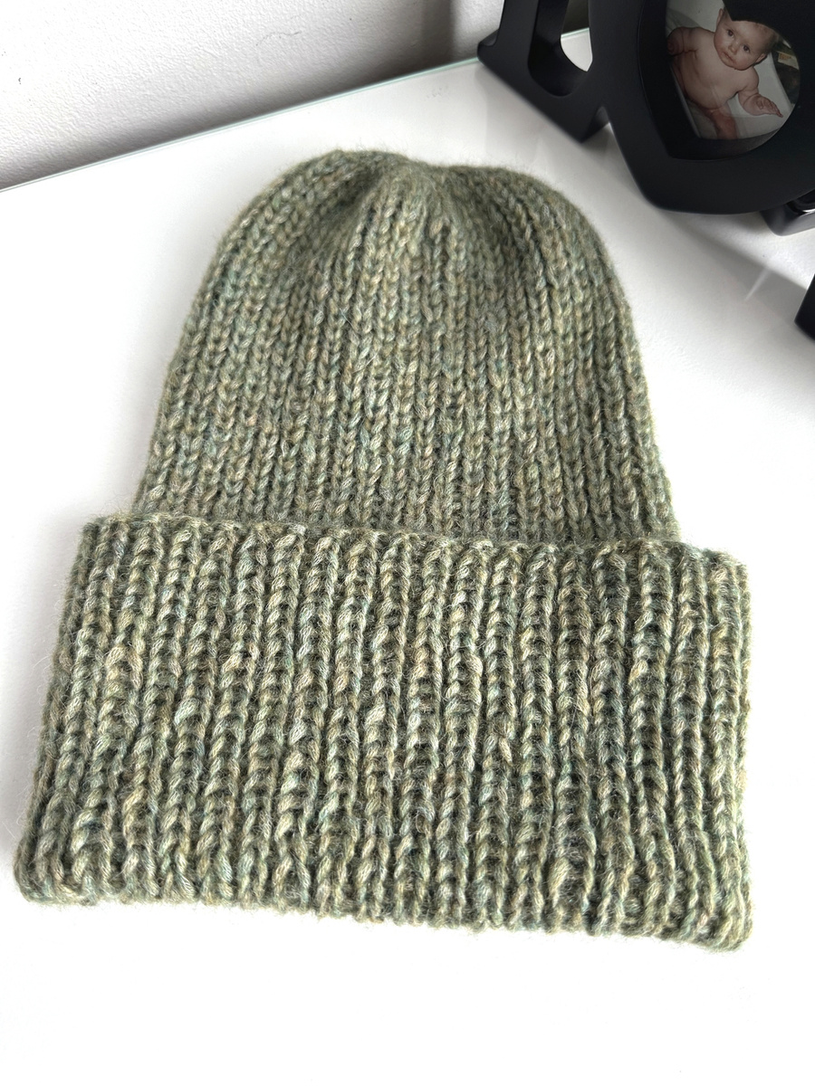 Ciepła czapka ręcznie robiona wywijana CHMURKA Alpaka 12 Zielony Mech