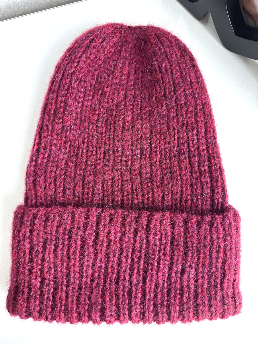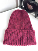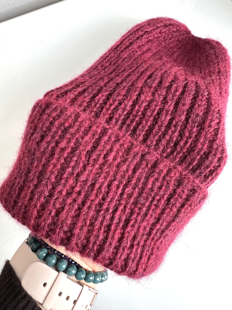 Ciepła czapka ręcznie robiona wywijana CHMURKA Alpaka 07 Rubinowa